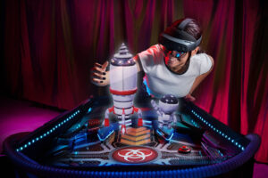 Eine partizipatorische Mixed-Reality-Installation, in der sich darstellende Kunst, Kunsthandwerk und immersive Technologie treffen und zu einer neuen Kunstform verschmelzen: fünf handgefertigte Flipper, die die Spielerinnen und Spieler mitnehmen in fünf verschiedene Welten. Mittels eines retro-futuristischen Helms interagiert die reale Welt des Flippers mit virtuellen Elementen und wird zu einer augmented reality, einer holografischen Umgebung. Dabei hat jeder Flipper eine andere Form, erzählt seine eigene Geschichte und verbirgt so manches Rätsel, das entschlüsselt werden will. So liegt in der Truhe ein Schatz versteckt, aber um ihn zu finden, müssen verschiedene Abenteuer überstanden werden. Ist der Pirat ein Freund, der versucht zu helfen, oder will er doch nur den Schatz an sich bringen? Bereit? Helm auf und los geht´s! Eintritt frei.