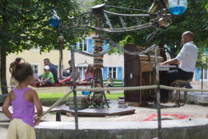 Haben Sie schon einmal davon geträumt, auf einem fliegenden Teppich zu reiten, während ein Pianist Ihren Flug mit wunderbarer Musik begleitet? Scheinbar schwerelos die Welt an sich vorbeiziehen lassen und nur dem Piano lauschen? In der wundervollen Umgebung von Grandet Douglas wird dieser Traum Wirklichkeit. Das Karussell Le Manège du Contrevent ist Balance, ist perfektes Gleichgewicht zwischen einem Klavier und einem fliegenden Teppich. Und es ist ein Aufruf zu Fantasie und Leichtigkeit, zerbrechlich und hypnotisch zugleich.